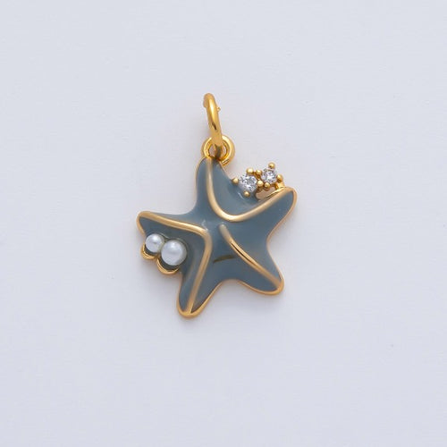 18k Gold Filled Shell Pearl Cz Grey Starfish Charm
